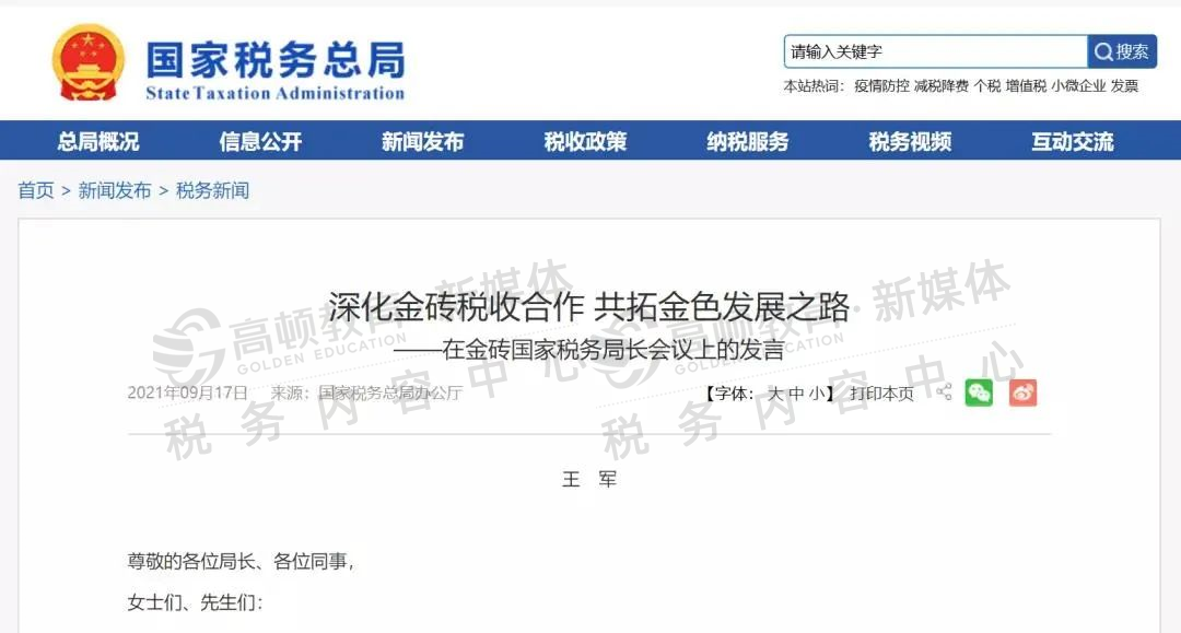 近日,在金磚國家稅務局長視頻會議中,國家稅務局長王軍在會議上發言:我國正向“以數治稅”時期邁進,稅務工作將進入一個新的時代,金稅工程四期建設已正式啟動實施!