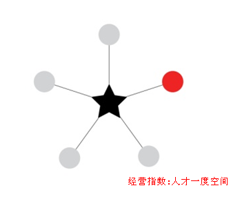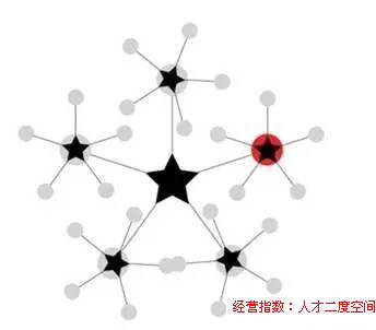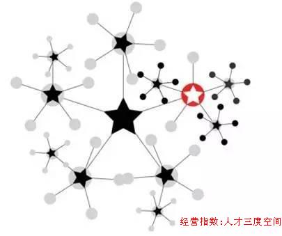 二度空間:隨著組織的發展,有能力的個體會逐漸成為部門的管理者,成為某個分支的核心,這時該個體所在位置和組織的結構圖如下: