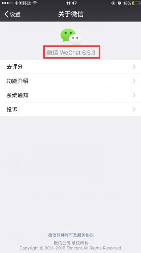 ——前提是微信版本是6.5.3或以上,查看自己的版本號(點擊:我——設置——關于微信)