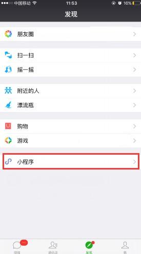 在“發現-小程序”中,可以通過搜索進入小程序。